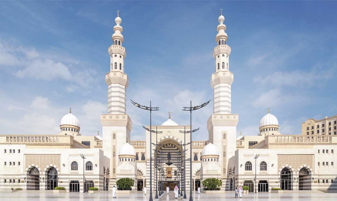 • ويشمل المبني علي دور بدروم كخدمات مسانده ومواقف السيارات ودور سفلي مخصص لصاله صلاه رئيسيه والخدمات المسانده من مطبخ مركزي وصالات طعام ومتطلبات الاعتكاف.